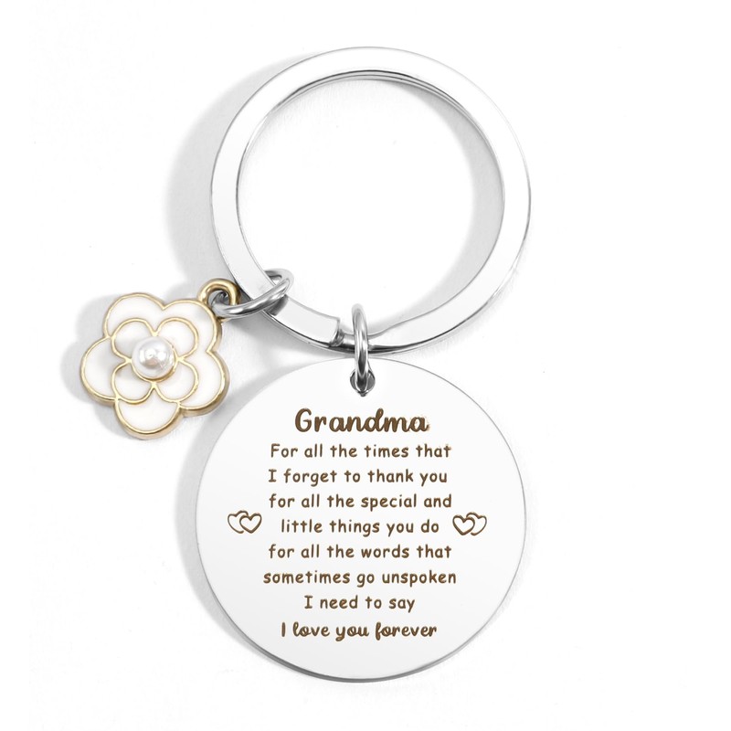 - DELICATE AND COMPACT KEYRING✨The grandma keyring is engraved with the special words "Grandma, for all the times that I forget to thank you, for all the special and little things you do, for all the words that sometimes go unspoken I need to say I love you forever". We'll always love our grandma. Good luck gifts, great grandma gifts, mothers day gifts grandma, grandma gifts for mothers day, gifts for grandparents and grandparents christmas gifts.