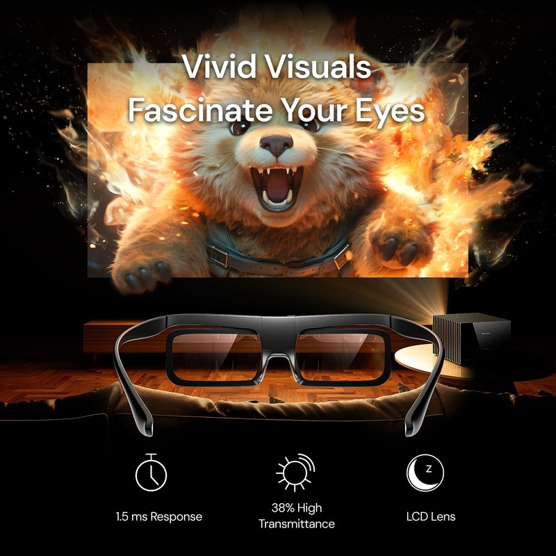 - Excellent anti-interference ability and stability: less than 1.5ms response time and 38% high transmittance bring you the most vivid, brightest and lossless 3D effect.