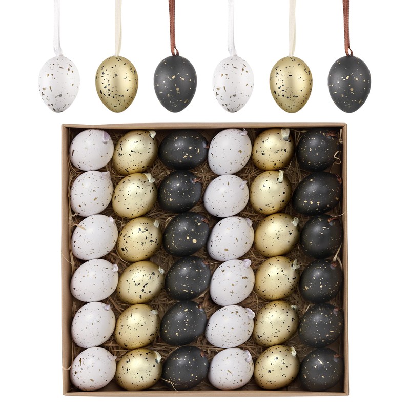 Valery Madelyn Easter Eggs for Hanging for Easter Decoration, 4 cm Natural-Coloured Artificial Mini Easter Eggs for Easter Decoration (36, Black Gold)