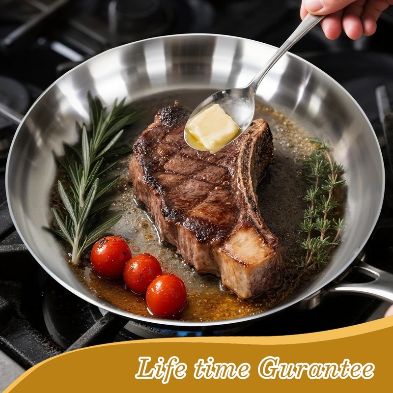 - Built to Last: Crafted from premium stainless steel with a heavy-duty core, this skillet is rust-Resistant, warping, and corrosion. Engineered for long-term performance — your kitchen essential for years to come.