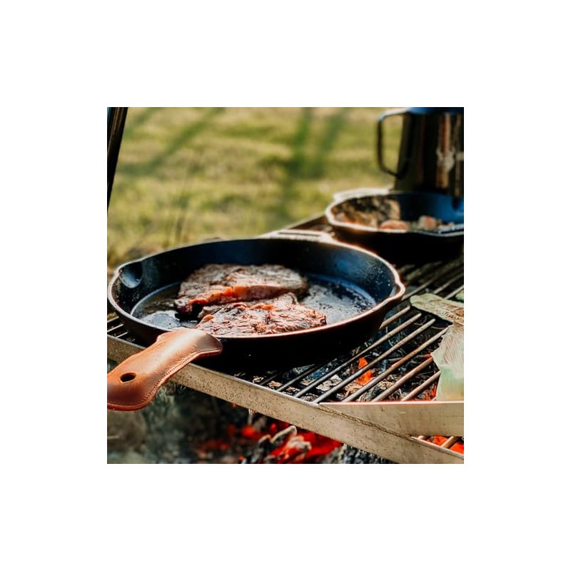 Valhal Outdoor - Skillet Sleeve - Steel Sleeve/Grip Protection - Real Leather - With Hole for Hanging - VH.Sleeve