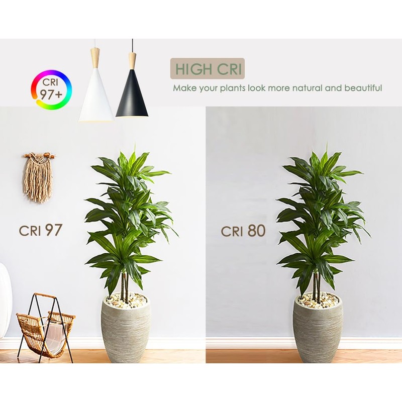 - Full spectrum, High CRI for eye protection: This is a full specturm grow light bulb providing the high-qualily plant light, appears 3000K warm yellow color while has a invisiable red/blue light specturm 380nm to 810nm. High CRI 97+ restore the true color of plants, without harsh or unsightly lighting to your indoor garden.