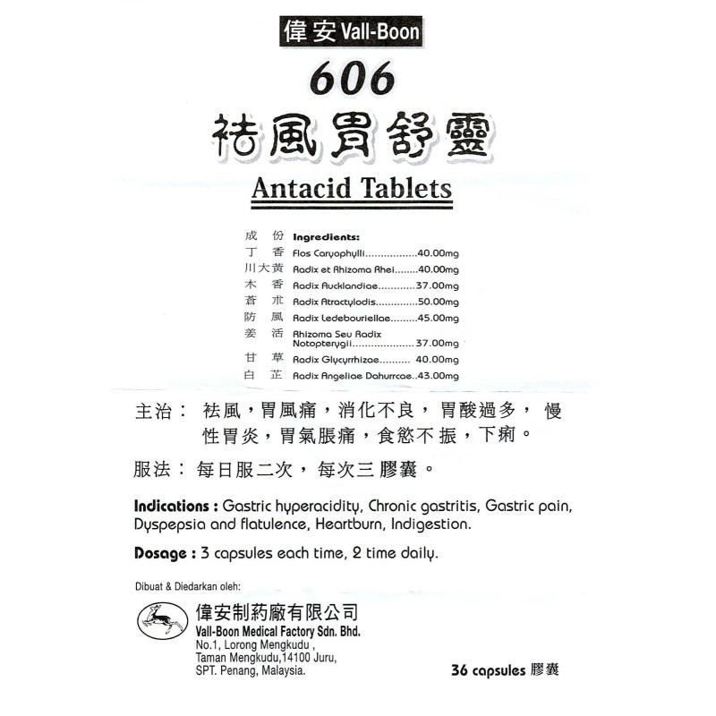 Vall-Boon Vall Boon 606 Antacid Tablets (stomach pain due to gastric acid, indigestion)