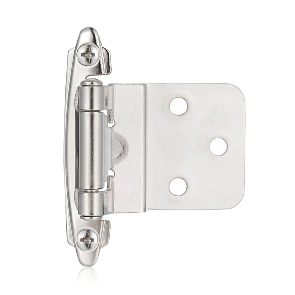 Vallecloud 4 Pack (2 Pair) 3/8" Inset Brushed Satin Nickel Self Closing Cabinet Hinges for Offset Kitchen Cabinet Door, Face Frame Semi Concealed Kitchen Cabinet Hinges