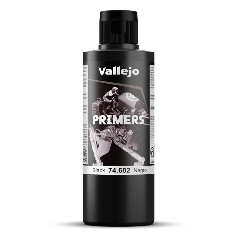 Vallejo - Surface Primer Color | Black Acrylic Primer 200 ml (6.76 fl.oz.) | Matte Finish and Fast Drying | Perfect for Airbrushing and Great Adhesion to Figurines and Scale Models