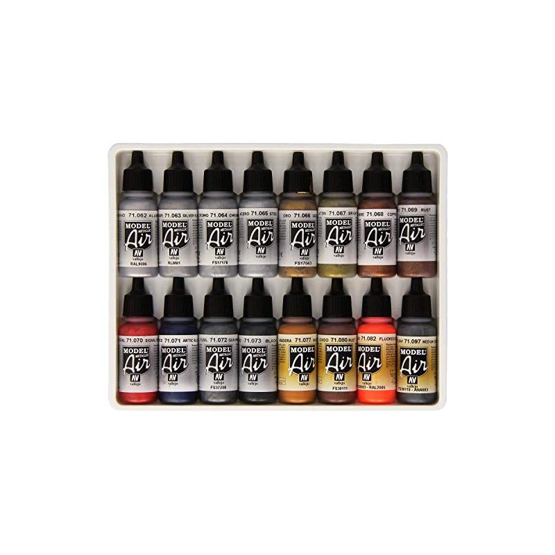 Vallejo Metallic Set Model Air Paint, 17ml, Multicolor, 16-Pack
