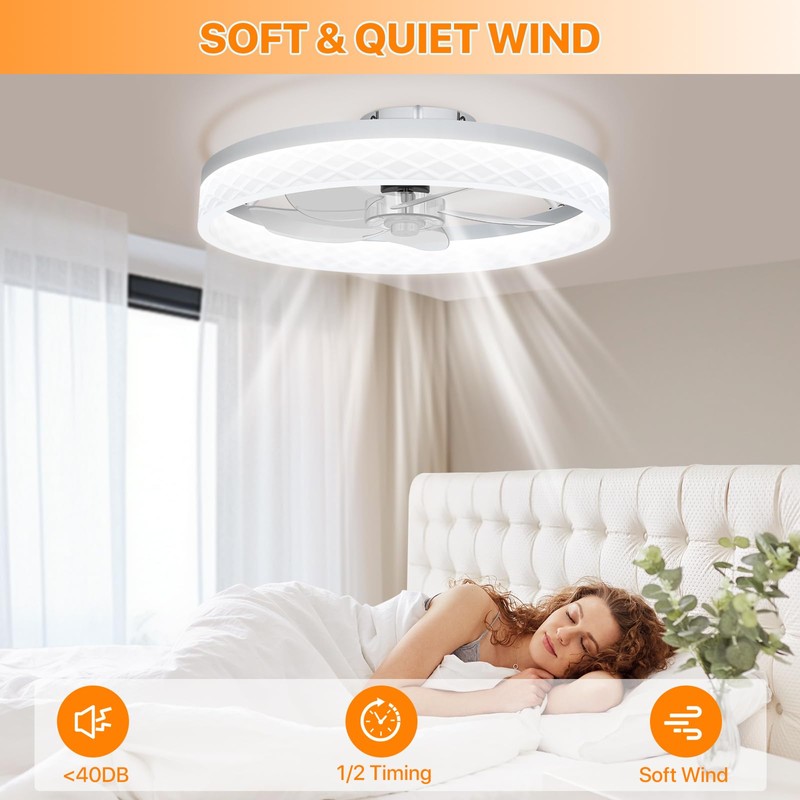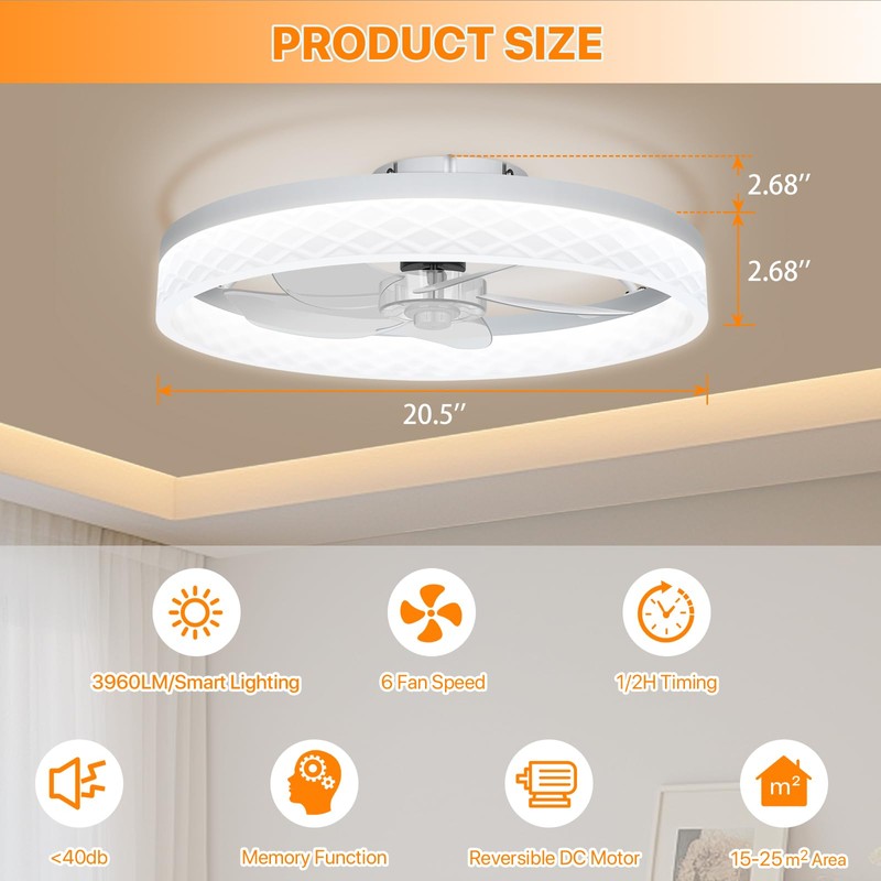 - Quiet and Energy-Efficient Design: The bladeless fan operates silently, making it ideal for bedrooms and children's rooms. Its high-efficiency motor and LED lighting ensure long-lasting performance, with a lifespan of up to 50,000 hours. By consuming less energy, it helps lower utility bills while reducing your environmental footprint. This bedroom ceiling fan combines advanced technology with sustainability, making it a perfect choice for eco-conscious households