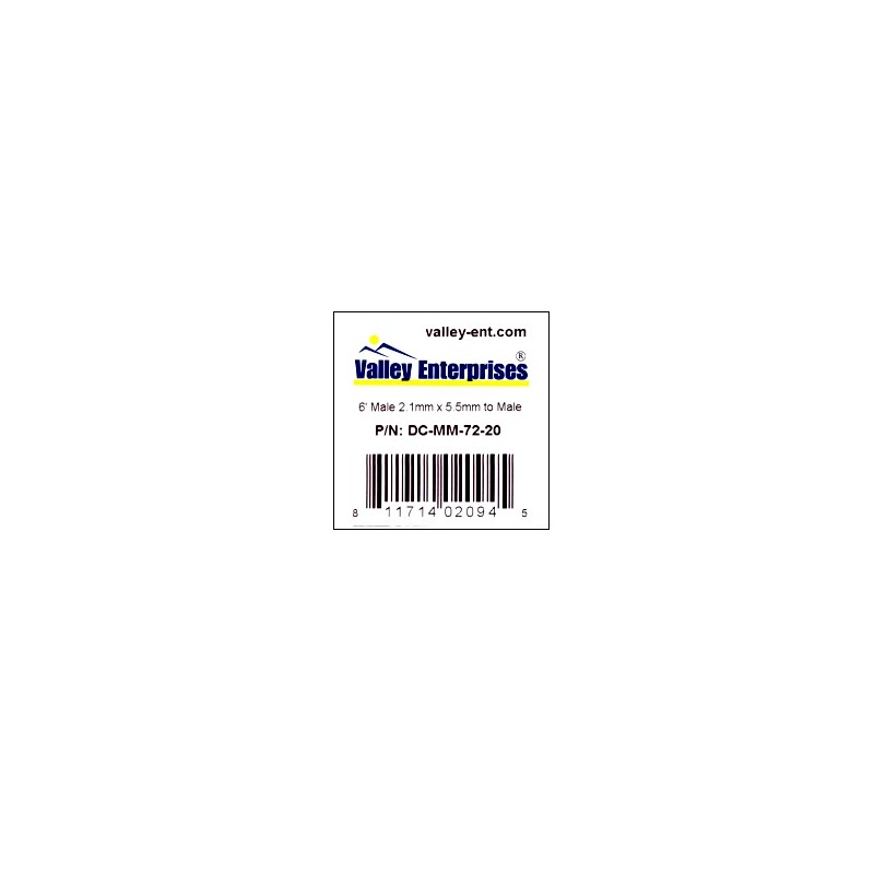 Valley Enterprises 6' 2.1mm x 5.5mm Male to Male DC Power Adapter Extension Cable 20AWG