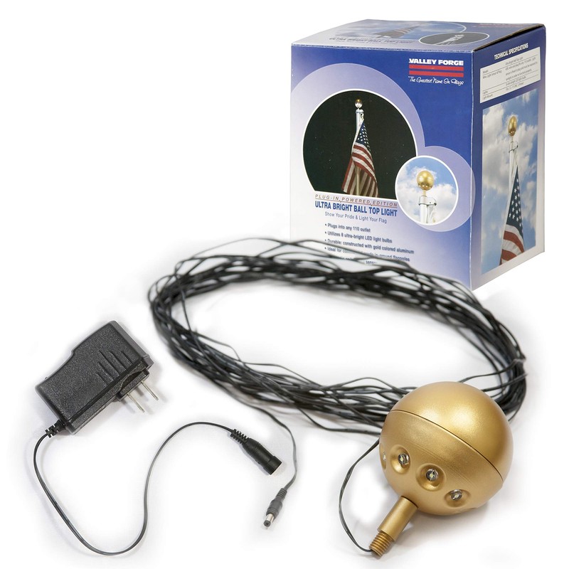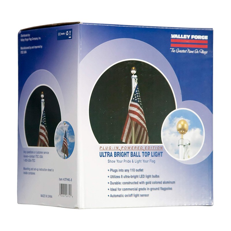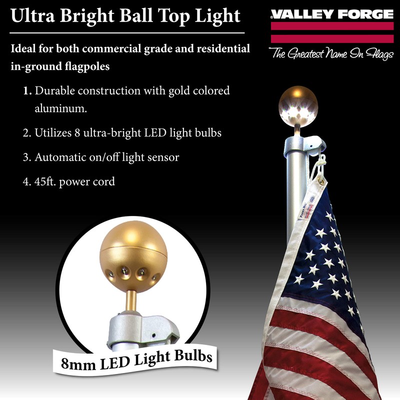 Valley Forge, Flag Pole Light, Aluminum, Hard-Wired, 8 LED Ultra Bright Bulbs, Gold Ball Top, Automatic On/Off Sensor