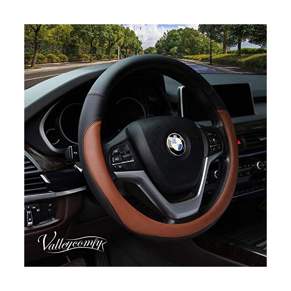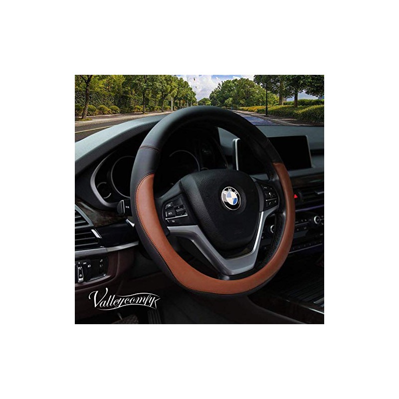 Valleycomfy Microfiber Leather Steering Wheel Covers Universal 15 inch (Brown