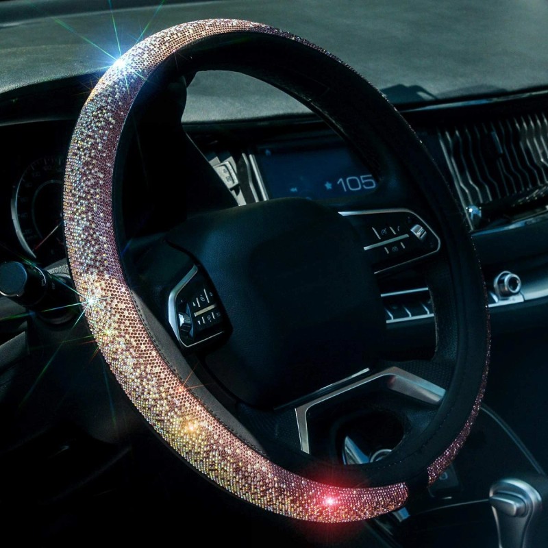 - ▶Luxury and Fashion: Unique gradient color, increase the sense of hierarchy; Fashion Charming Design of the Diamond Steering Wheel Cover, adds luxury into your car interior Bling under the light, sparkling through windshield and shining your car. Perfect Gift for Women and girls.