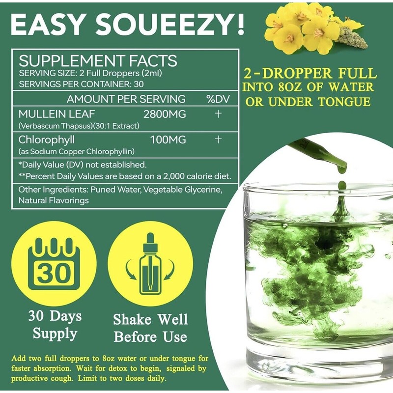 Mullein Drops - Lung Cleanse - Mullein Leaf Extract Powerful Mullein for Immune.