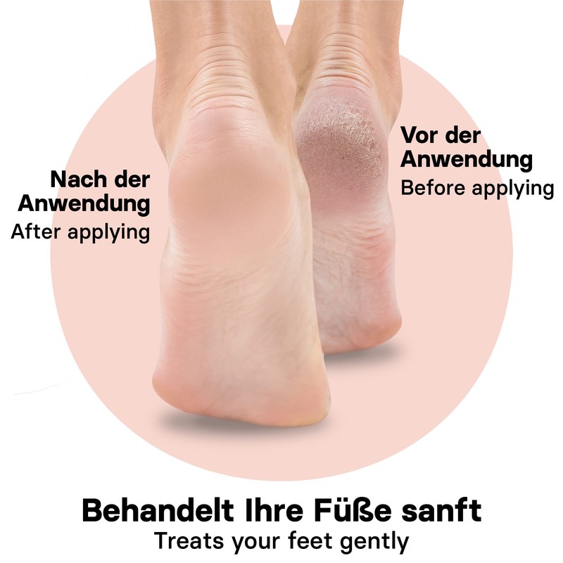 - Optimal grip: the wide handle of the Valneo foot file sits comfortably in the hand. This allows foot care and removal of calluses without much effort.
