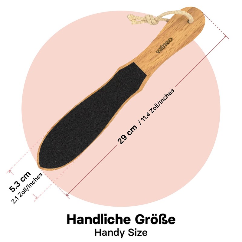 - Natural foot care for the home: with the Valneo foot file made of natural rubber wood, feet become velvety soft in no time. It is best to treat your feet immediately after the shower when they are still damp. Then it is the best.
