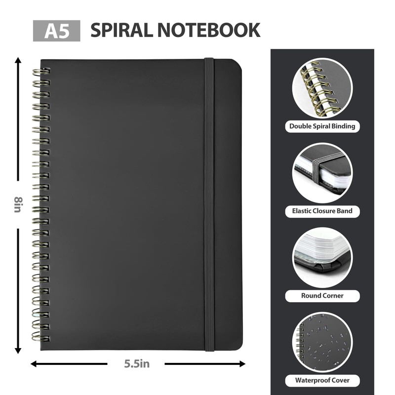 - [A5 HARDCOVER NOTEBOOK] - This journaling notebooks features a sturdy metal double-wire binding and a tough hardback cover that is water resistant. Effectively protects the journal's interior paper while providing a comfortable and sturdy writing surface.