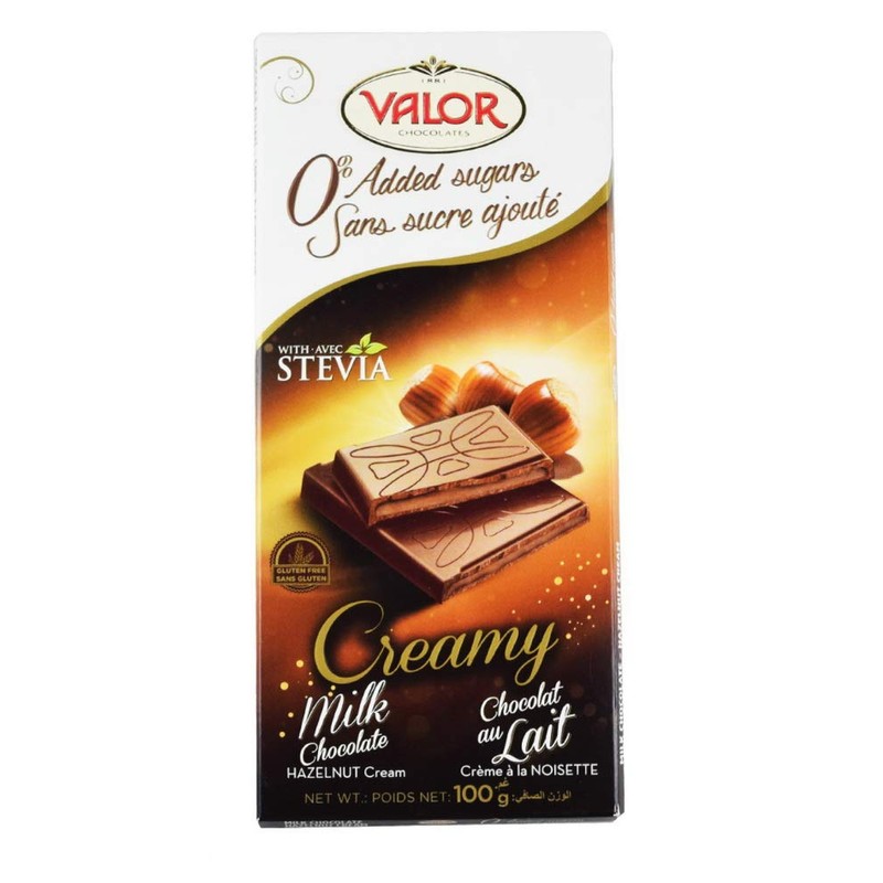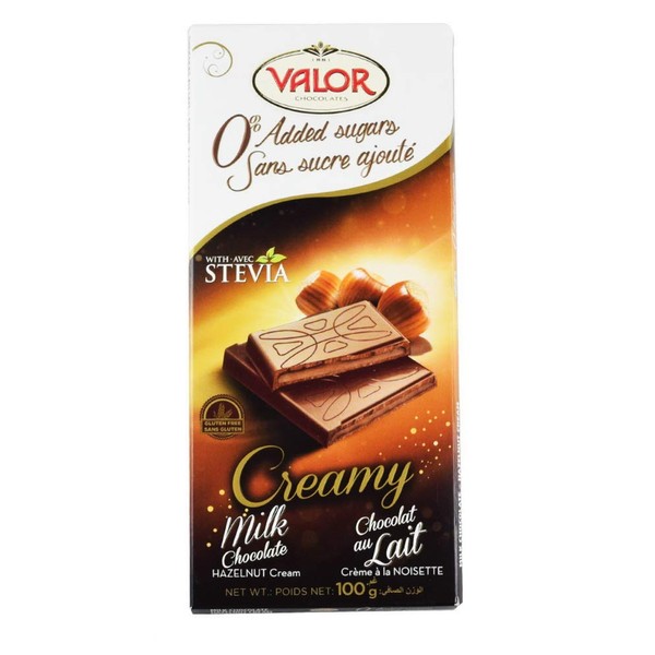 - Valor. 0% Sugar added Creamy Milk Chocolate with Hazelnuts