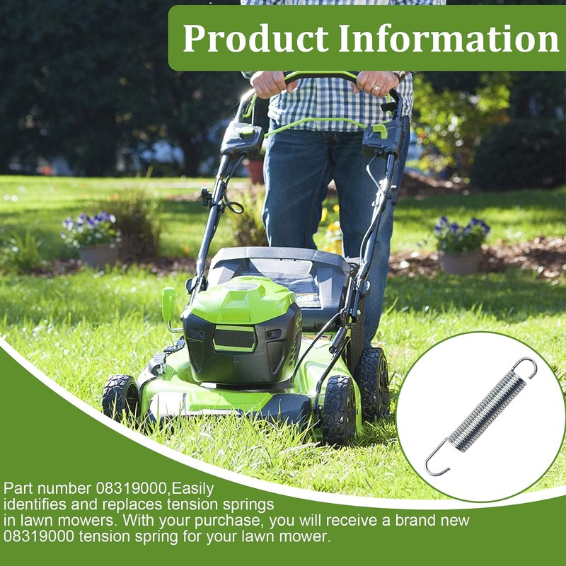 - Product Information:Part number 08319000,Easily identifies and replaces tension springs in lawn mowers. With your purchase, you will receive a brand new 08319000 tension spring for your lawn mower.