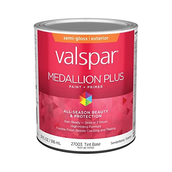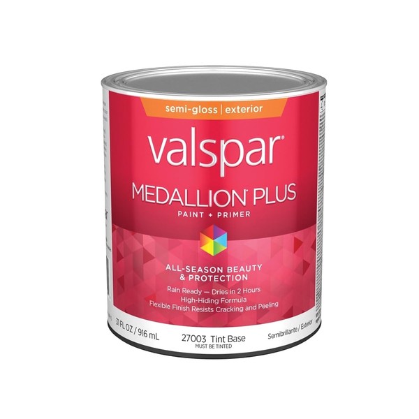 Valspar 27003 Tint Base Medallion Plus Exterior Paint & Primer, Semi-Gloss, 1 Quart