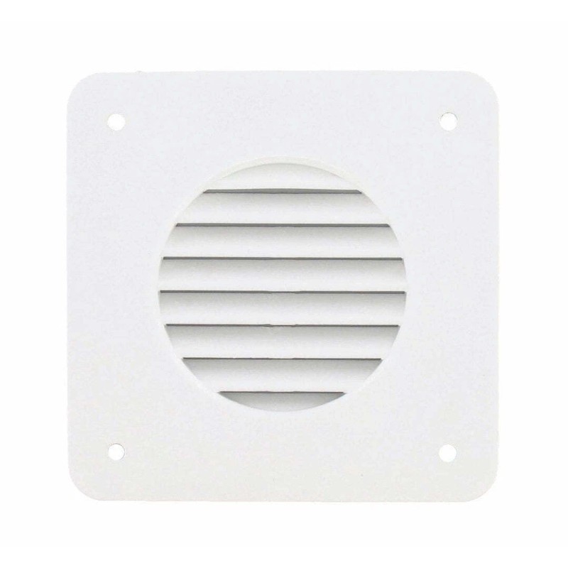 VALTERRA A10-3300 Use To Direct Battery Box Fumes Outside For Safety; Louvered Vent Cover; 4-1/4 Inch Length x 4-1/4 Inch Width Outside Dimension; Accommodates 1-3/4 Inch Hose; White; Plastic