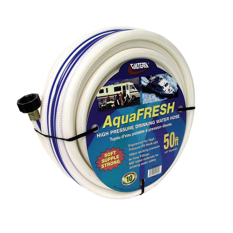 Valterra AquaFresh High Pressure Drinking Water Hose, Water Hose Hookup for RV - 1/2" x 50', White