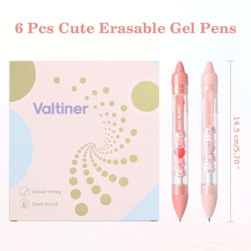 - Valtiner Retractable Pens Set: With 6 pack 0.5mm fine tip black pens, black ink pen smooth writing, and quick-drying, you can use the eraser on the pen top or the doll in the refill to easily erase errors without damaging the paper