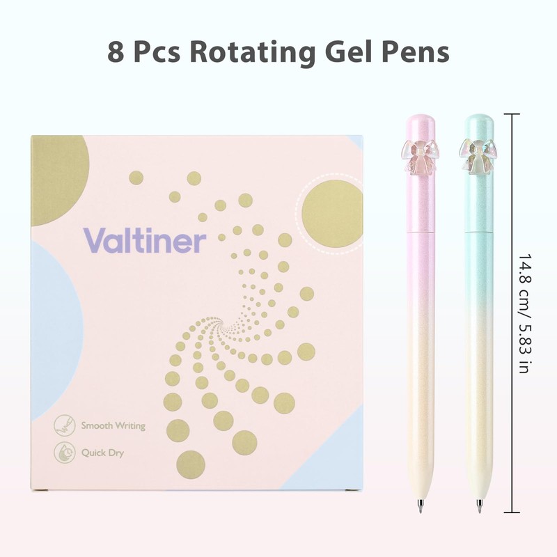 Valtiner 8 Pcs Cute Rotating Gel Pens, 0.5mm Fine Point Pen, Smooth Writing and Quick Dry, No Bleed & Smear, Aesthetic Barrels, Black Ink Pen for Journaling (Glitter Multicolor Rotate)