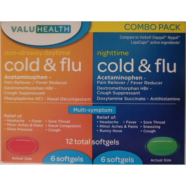 ValueHealth COMBO PACK DAYTIME NIGHTTIME MULTI-SYMPTOM Cold Flu Relief 12 Softgels