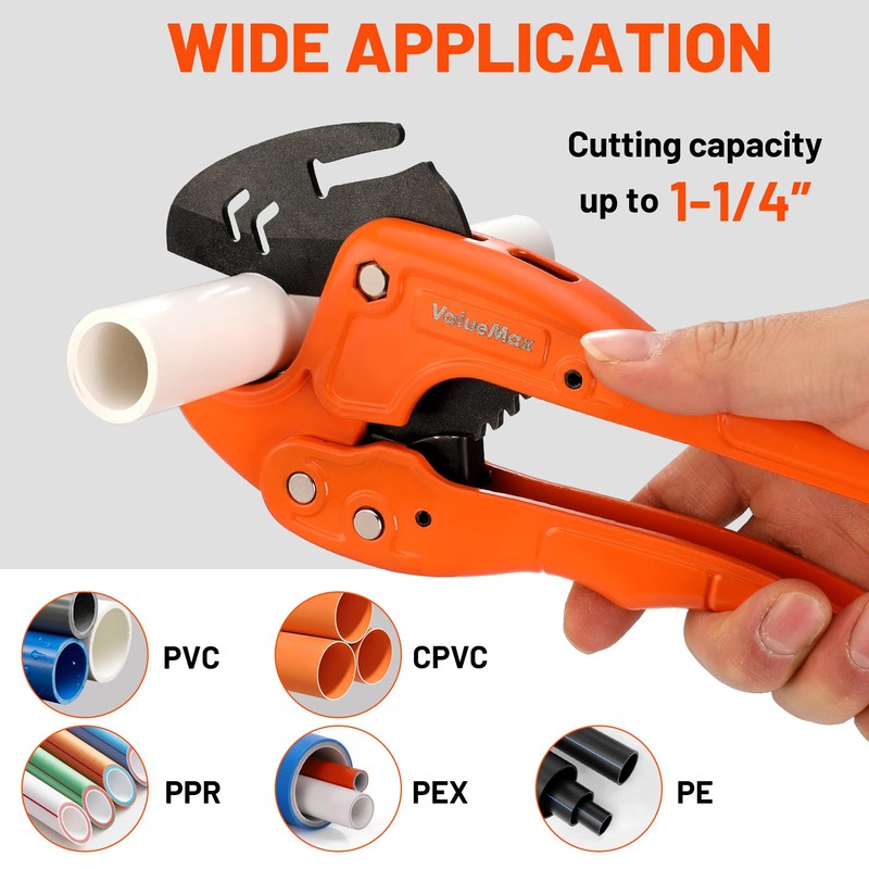 ValueMax PVC Pipe Cutter and PEX cutter, Hose Cutter, Tubing Cutter for PVC, PEX, PPR, PE, PP, Rubber Hoses, Suitable for Home and Plumbing Repairs