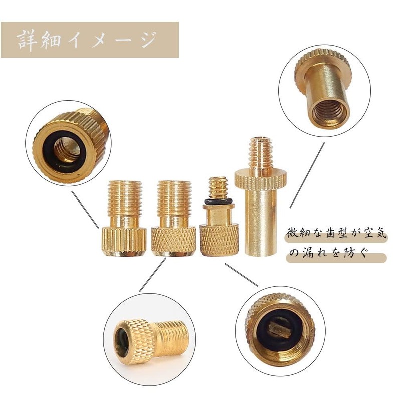 Valve Adapter, Bicycle Inflator, Tire Inflator, Ball Inflator, Bicycle Valve Conversion Adapter, Suitable for Presta, American, English Conversion, 4 Piece Set (Gold)