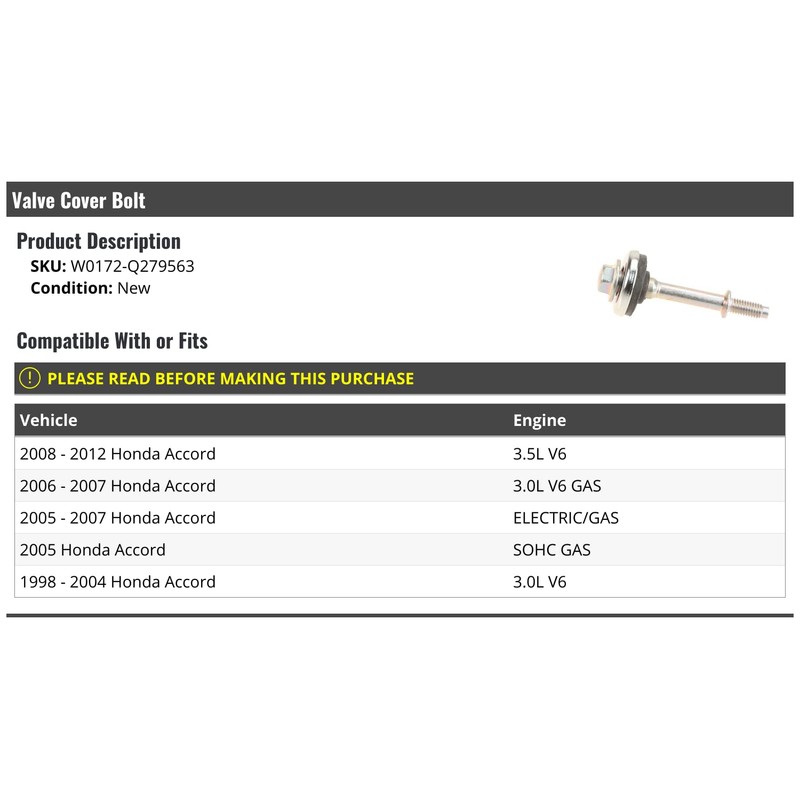Valve Cover Bolt - Compatible with 1998-2012 Honda Accord