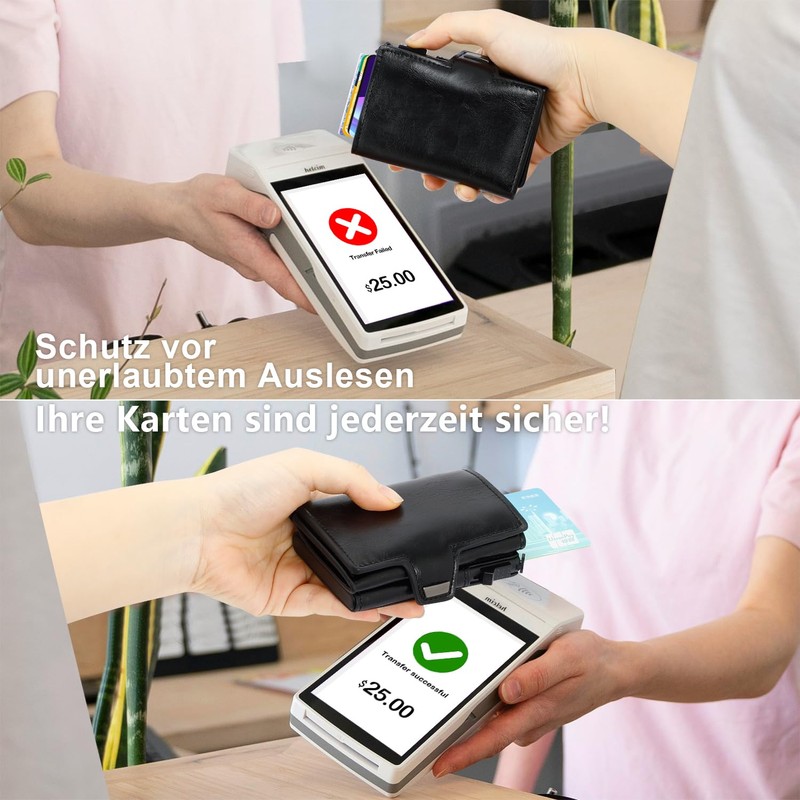 - Reliable RFID Protection RFID blocking protects your cards from unauthorized scanning. This men's leather wallet offers maximum safety and prevents data theft.