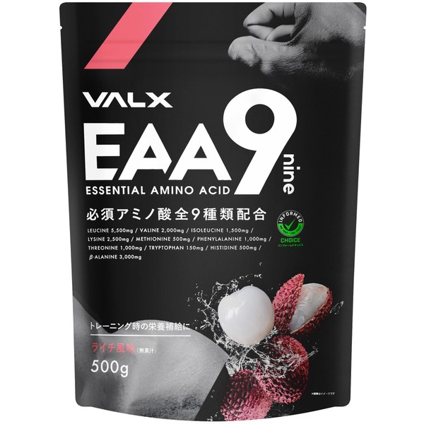VALX バルクス EAA9 山本義徳 ライチ風味 必須アミノ酸9種類配合 EAA 500g 国産 ベータアラニン アンチドーピング認証 インフォームドチョイス ロイシン リジン トリプトファン