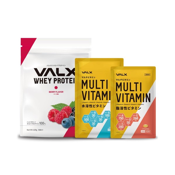 VALX バルクス WPCホエイプロテインベリー風味420g マルチビタミン水溶性ビタミン マルチビタミン脂溶性ビタミン 3種セット