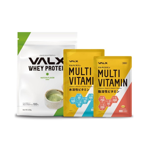 VALX バルクス WPCホエイプロテイン抹茶風味420g マルチビタミン水溶性ビタミン マルチビタミン 脂溶性ビタミン 3種セット