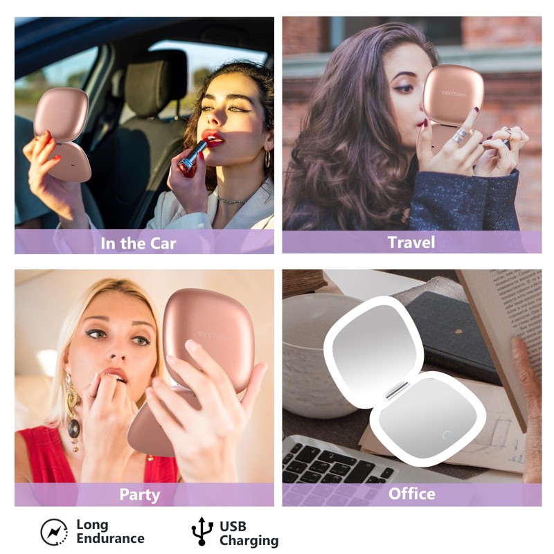 - Tamaño de viaje recargable y portátil: el tamaño total del espejo de maquillaje LED Vamillkra es de aproximadamente 4 x 4 x 0 pulgadas. Es realmente agradable guardarlo en tu bolso/coche para un uso perfecto de viaje y diario. Además, este espejo de maquillaje portátil puede funcionar durante mucho tiempo con batería de litio recargable de 600 mAh integrada, sin necesidad de recargar con frecuencia. Llévalo a todas partes cuando necesites el espejo