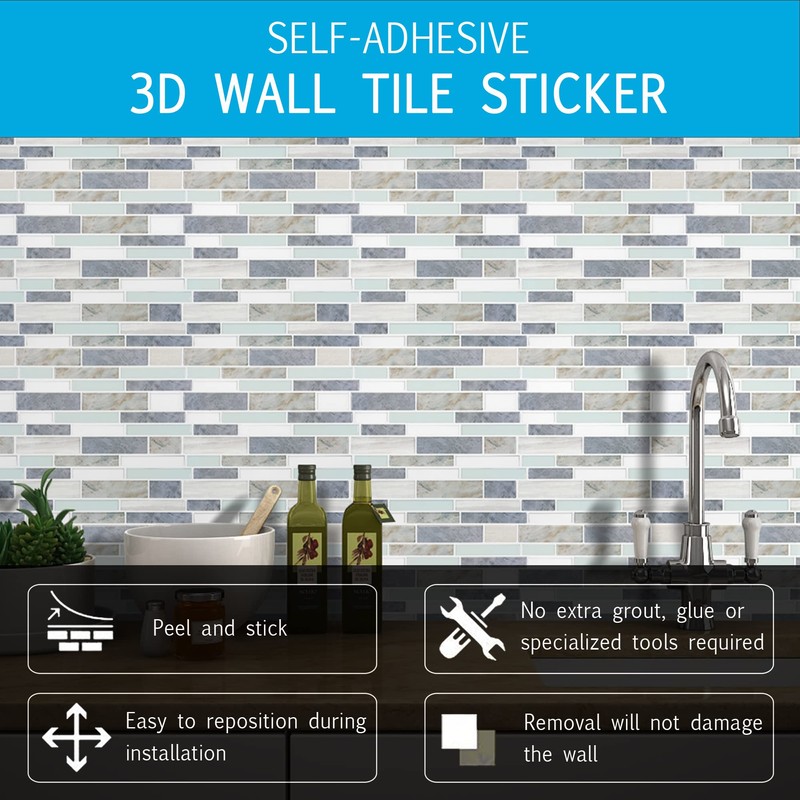 - ►EASY DO IT YOURSELF: Just peel, interlock and stick. No need to overlap, no grout and no mess,save your time and money on labor.Widely used in kitchen backsplash,kitchen island walls,shower,bathroom backsplash,fireplace,and installed behind the stove.