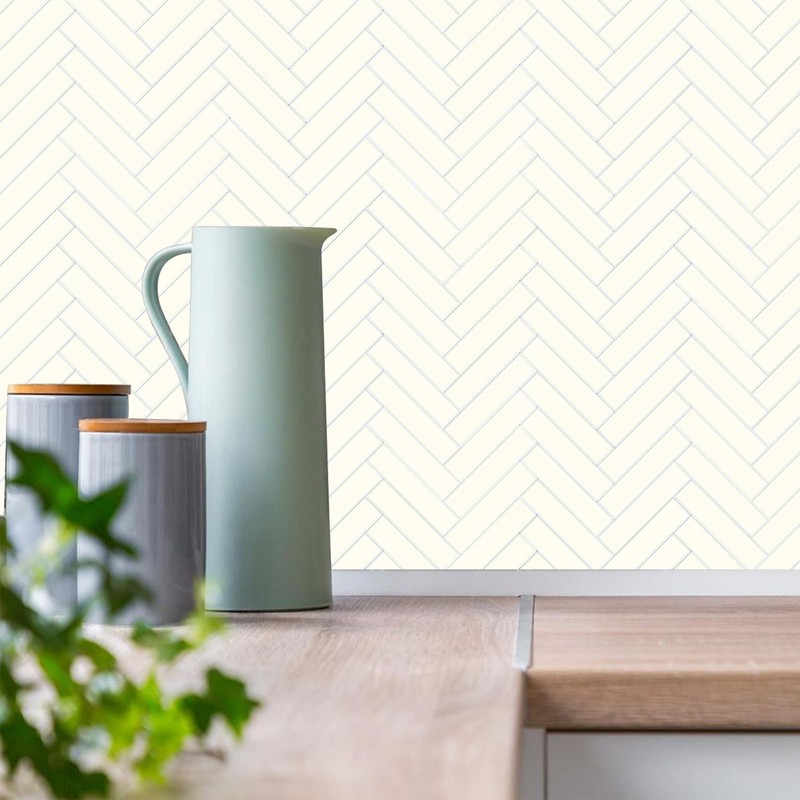 Vamos Tile Herringbone Tile Peel and Stick Backsplash - 10 Sheets Beige PVC S...