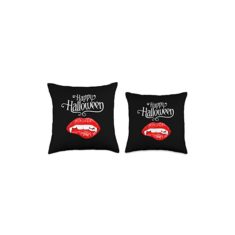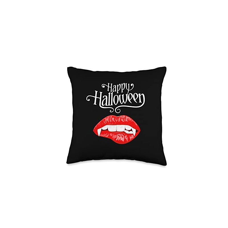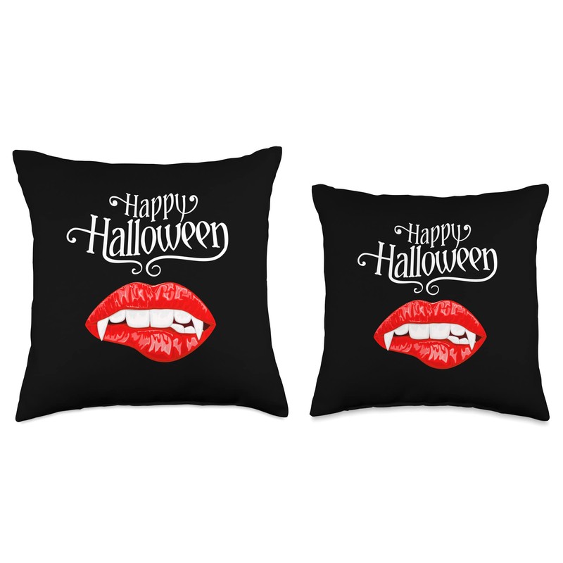 Vampire Teeth Lips Happy Halloween Throw Pillow