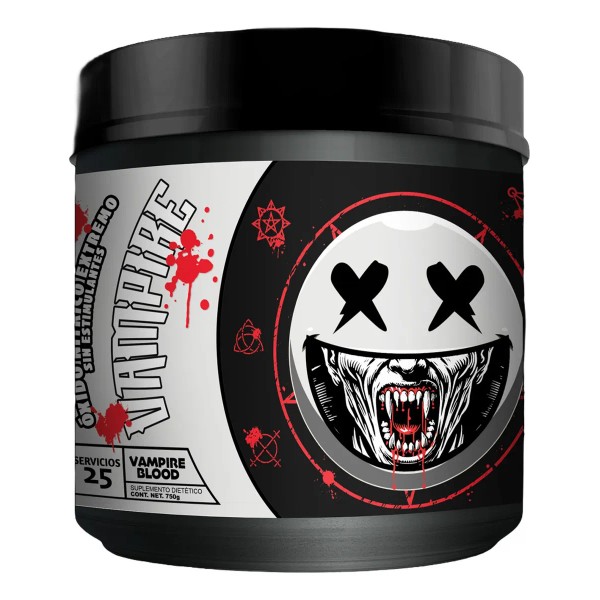 Vampire Blood es un pre-entreno sin cafeína diseñado para atletas que quieren máximo rendimiento sin efectos secundarios como insomnio, nerviosismo o taquicardia. Su fórmula está enfocada en mejorar el flujo sanguíneo, resistencia muscular y enfoque mental, sin estimulantes.