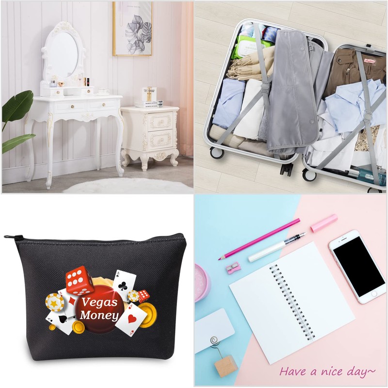 VAMSII Funny Gambling Vegas Lovers Gift Idea Vegas Money Bag Gambler Dice Casino Lover Makeup Bag(Vegas Money CA)
