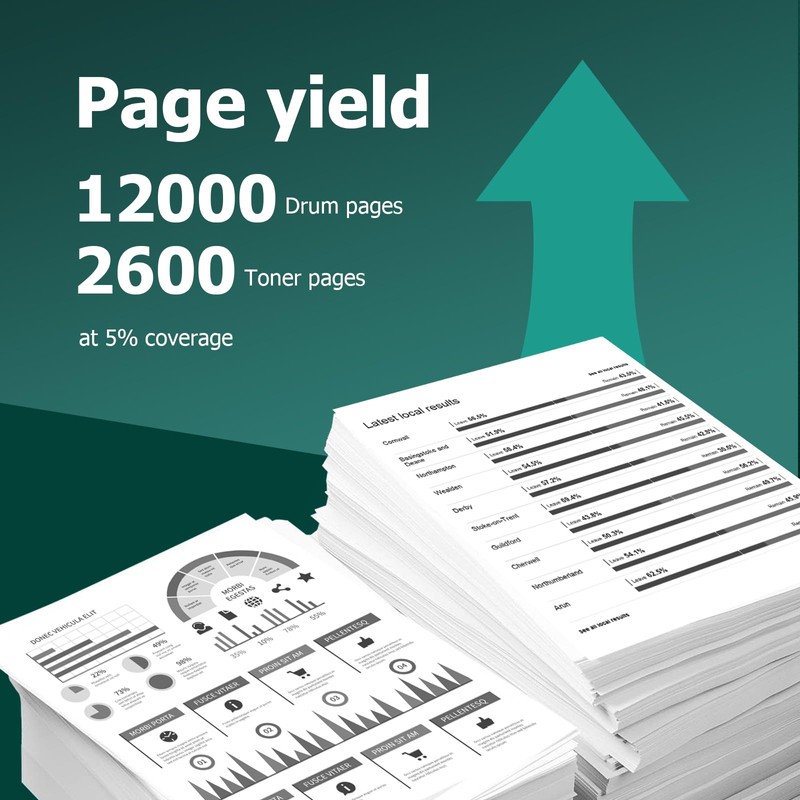 - High Yield: Up to 12,000 pages per drum unit at 5% coverage, and up to 2,600 pages per TN660 TN-630 toner cartridge at 5% coverage.