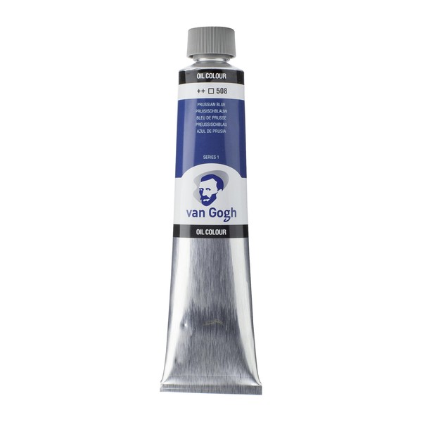 When looking for a better oil color, this Dutch-crafted Van Gogh range is for you. A buttery oil that features excellent tinting strength, a high level of pigmentation for intense colors, and a uniform degree of gloss and thickness amongst colors. Easy to mix and use. These oils are great for beginners, students in advanced studies, and working artists. This 200ml tube of transparent Prussian Blue 508 is formulated with pigment(s) PB27 and has a lightfastness rating of ++ (25-100 years under museum conditions). Series 1.