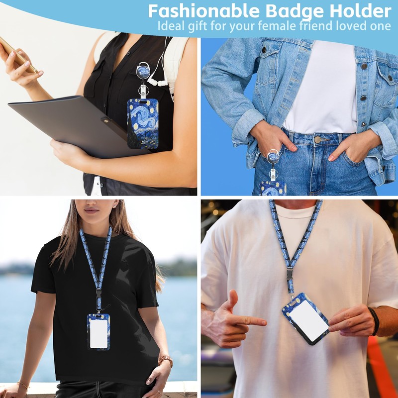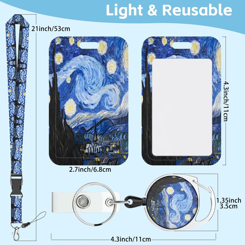- Fashionable Design: Our ID Badge Holder adopts a fashionable van gogh starry night sky pattern, which eliminates the previous dullness, brings a visual bright feeling, and gets rid of the monotony. It is very suitable for giving to friends or relatives on birthdays, anniversaries, or Christmas.
