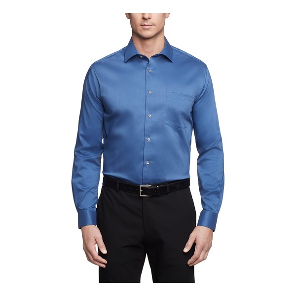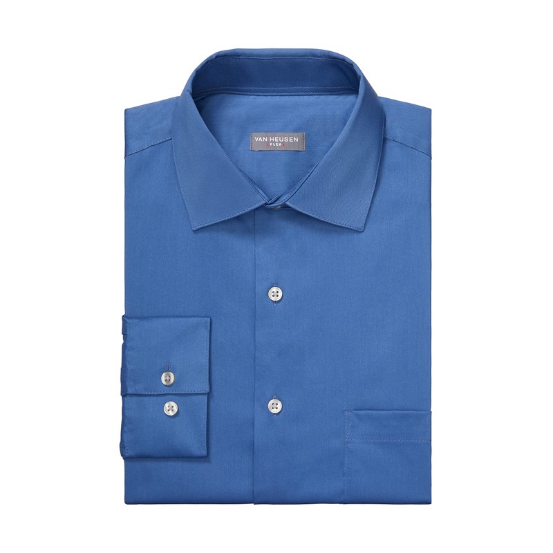 Van Heusen - Camisa de Vestir para Hombre, Ajuste Regular, Cuello Flexible, sin Arrugas, elástico, Azul Ahumado, 16"-16.5" Cuello 32"-33" Manga