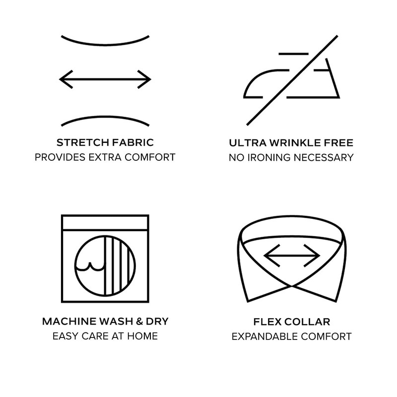 - Ultra última intervensión de arrugas: tela avanzada resistente a las arrugas para un menor planchado y un cuidado aún más fácil en casa. Cuello flexible: se estira hasta media pulgada para una comodidad ampliable. Elástico: la tela se estira y se mueve contigo para mayor comodidad.