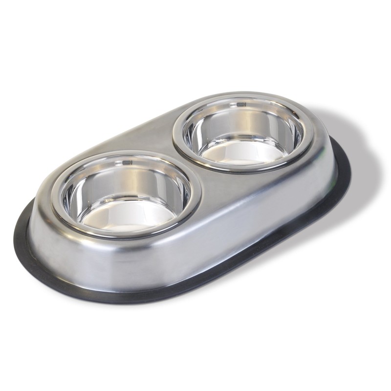 - Stainless steel large double dish, 32-ounces per side