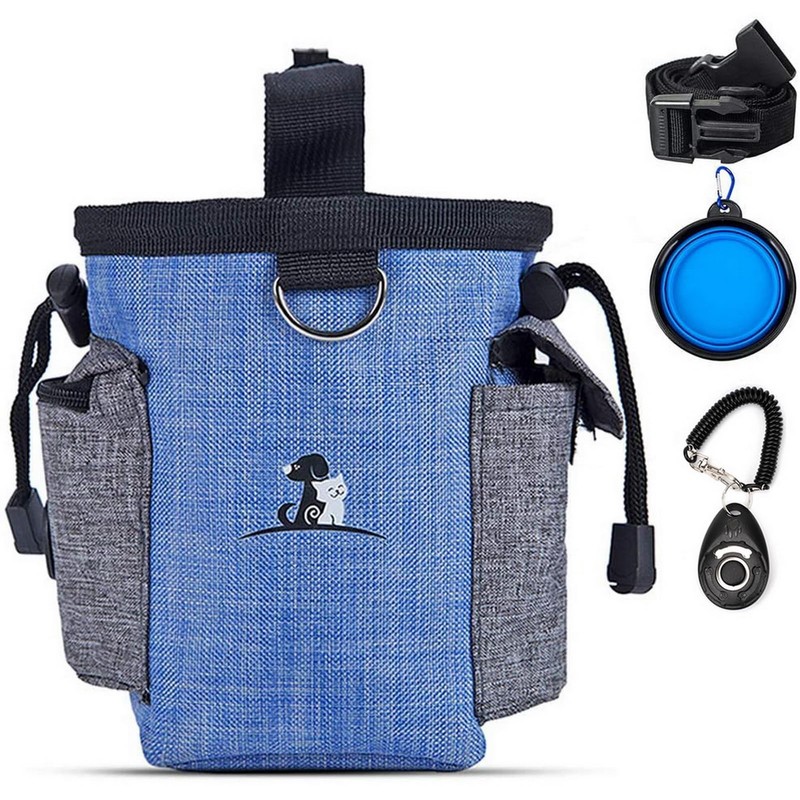 VANANA Pet Training Clicker Puppy Dog Training Snack Bag Built-in Poop Bag Dispenser Zipper Pocket with Adjustable Waist Belt Pouch Hand-Free for Dog Walking Training (Blue)