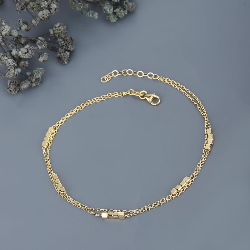 Vanbelle 18K Gold Plated Texture Bar Charm Double Layer Anklet for Women - 9"+1" Extender