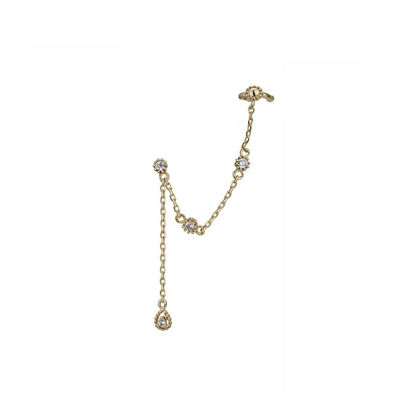 Vanbelle Gold-Plated Brass Stud & Ear Cuff Earrings with Dangling Chain and studded with White CZ stone for Women