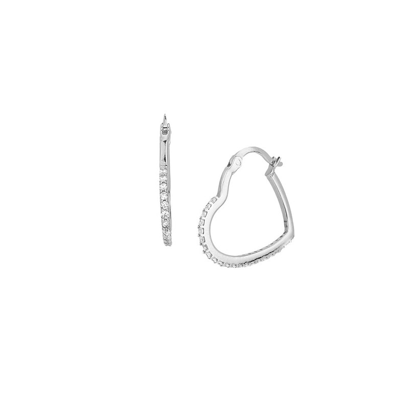 Vanbelle Sterling Silver Jewelry - Rhodium Plated with 925 Stamp - Studded Heart Hoop Earring with Cubic Zirconia Stone - Elegant Beautifully Handcrafted for Women